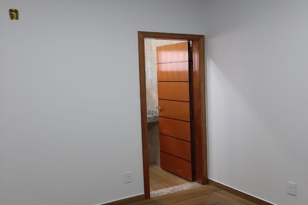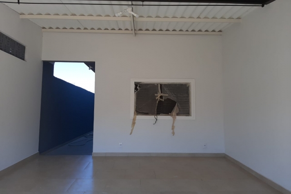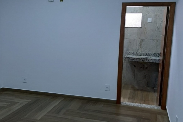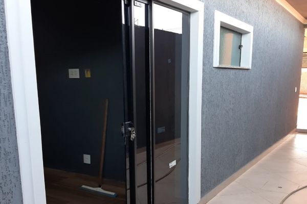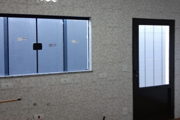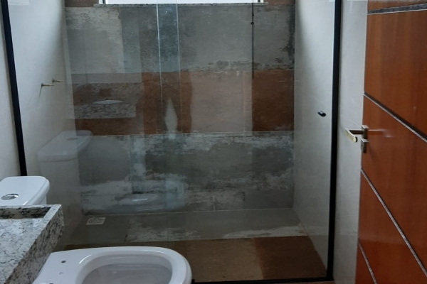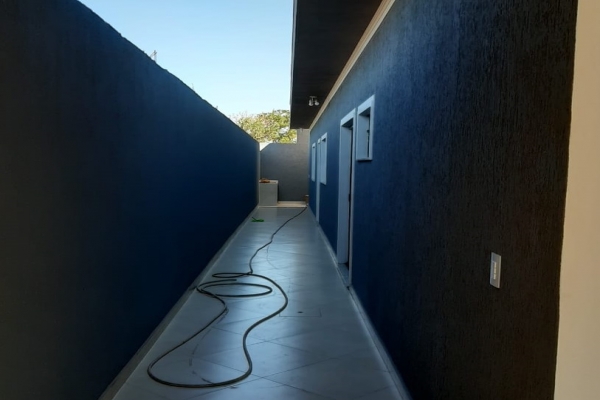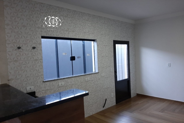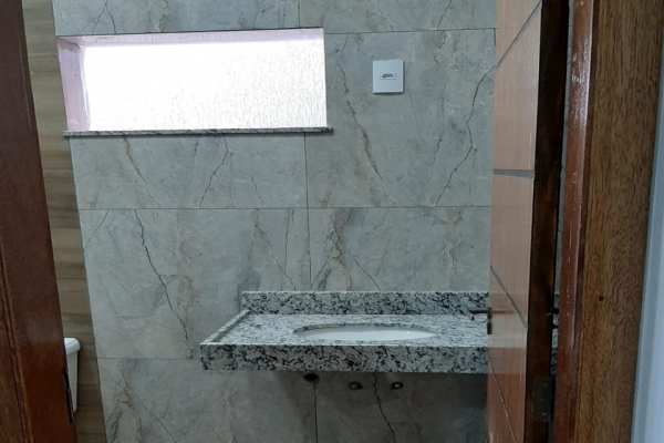 1 suíte, 1 quarto, sala, cozinha, balcão de granito preto São Rafael, banheiro, box de vidro, lavatório de granito, garagem para 2 carros. Construção de laje com acabamento em gesso, piso todo em porcelanato. Área do Terreno: 125m² - Área Construída: 100m²