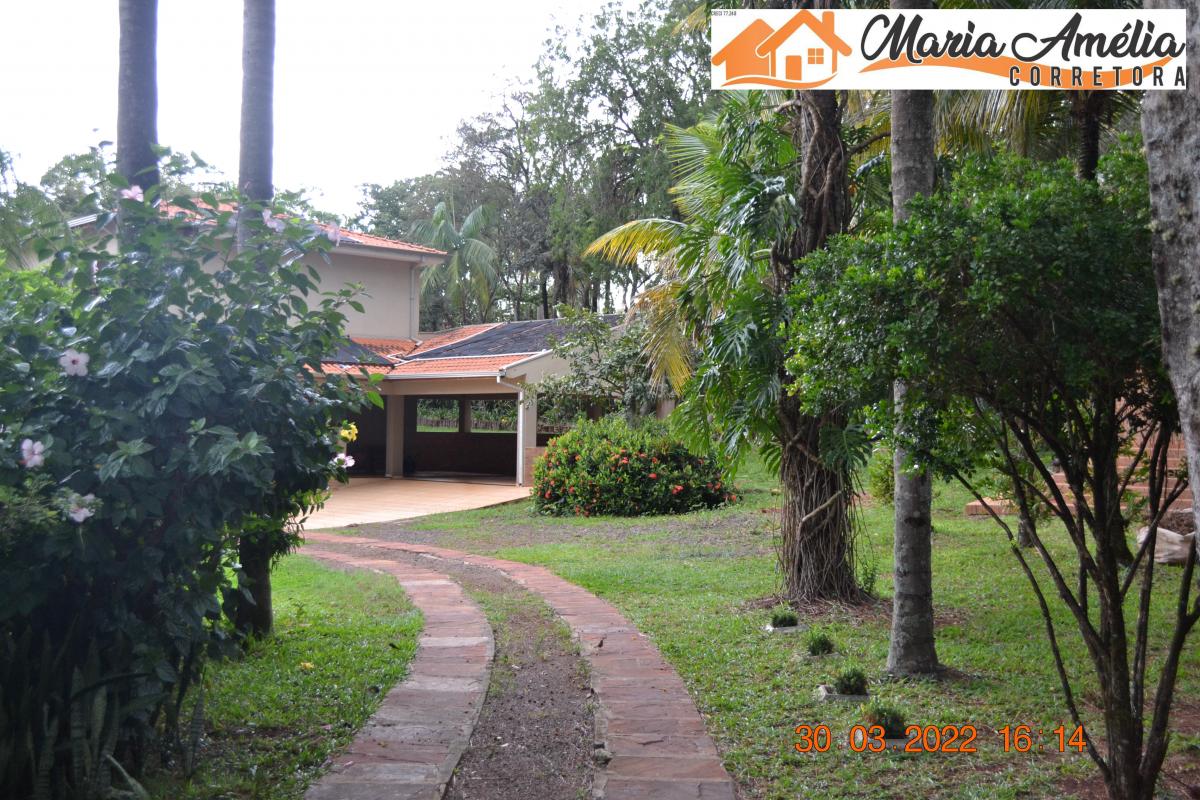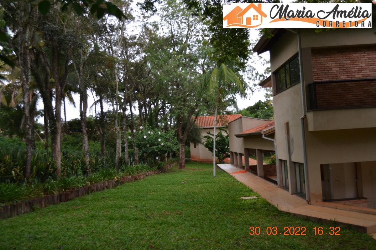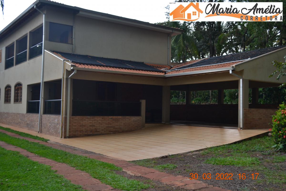 Casa/Chácara em Ipaussu com muita tranquilidade e contato com a natureza, um espaço enorme para você relaxar. - Próximo à rede de combate ao câncer de Ipaussu. Piso inferior: 1 suíte, 1 quarto, 1 banheiro social, sala, cozinha, lavanderia e garagem coberta para 2 carros -Piso superior: 3 suítes, 1 suíte master com hidromassagem, 2 quartos e sala de tv. Quartos e sala com porta balcão com vista panorâmica da piscina e dos lagos. Torneiras e chuveiros aquecidos. Casa para caseiro com 1 suíte, 1 quarto, cozinha e banheiro - Área Externa com: Piscina aquecida com raia de 16m; pergolado com pia; área gourmet com churrasqueira, fogão à lenha, balcão de mármore; salão de jogos com 2 banheiros; 1 lago pequeno; 1 lago médio com ponte e 1 quiosque; 1 capela. Terreno com 13.791m² e área construída com 832,76m².