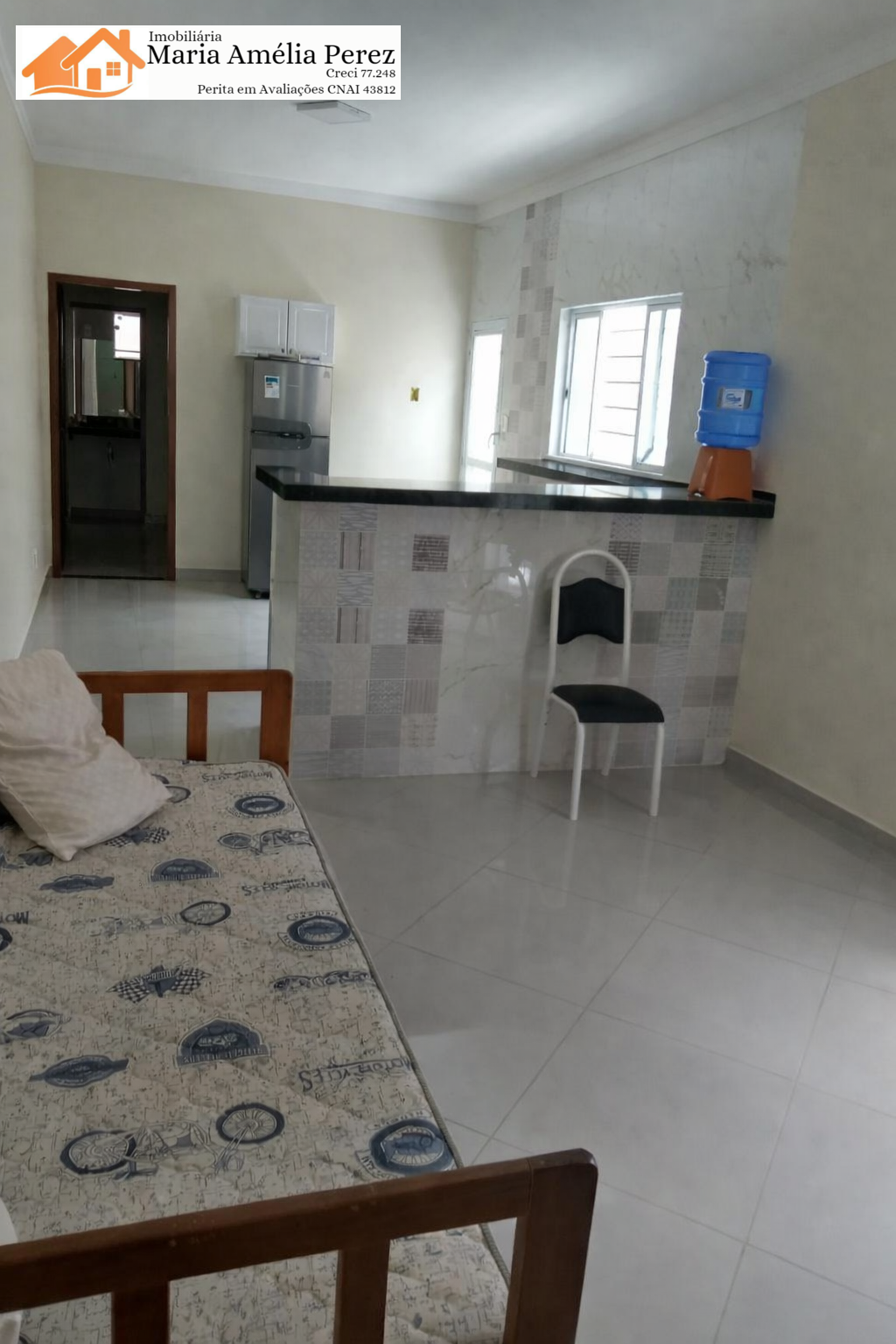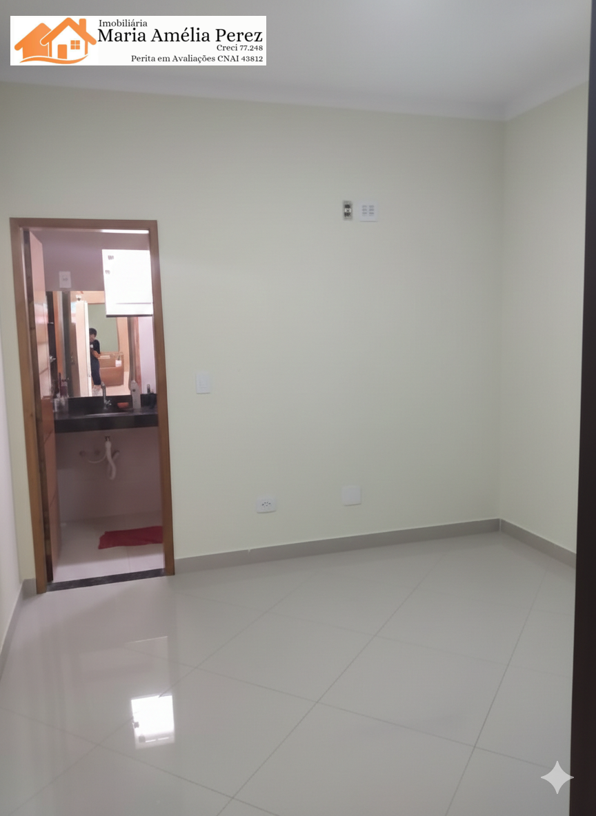 1 suíte, 1 quarto, sala, cozinha, banheiro, garagem para 2 carros.