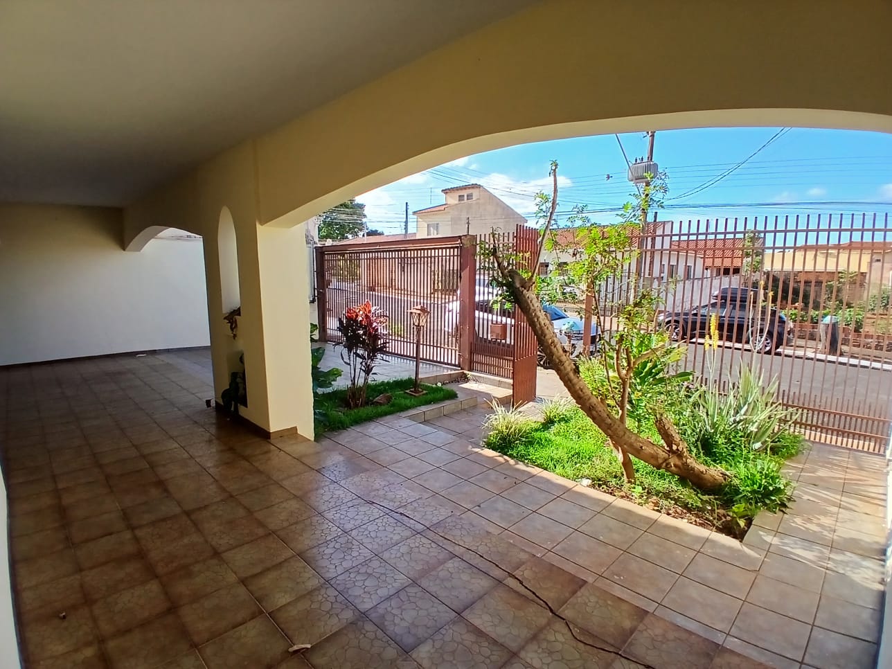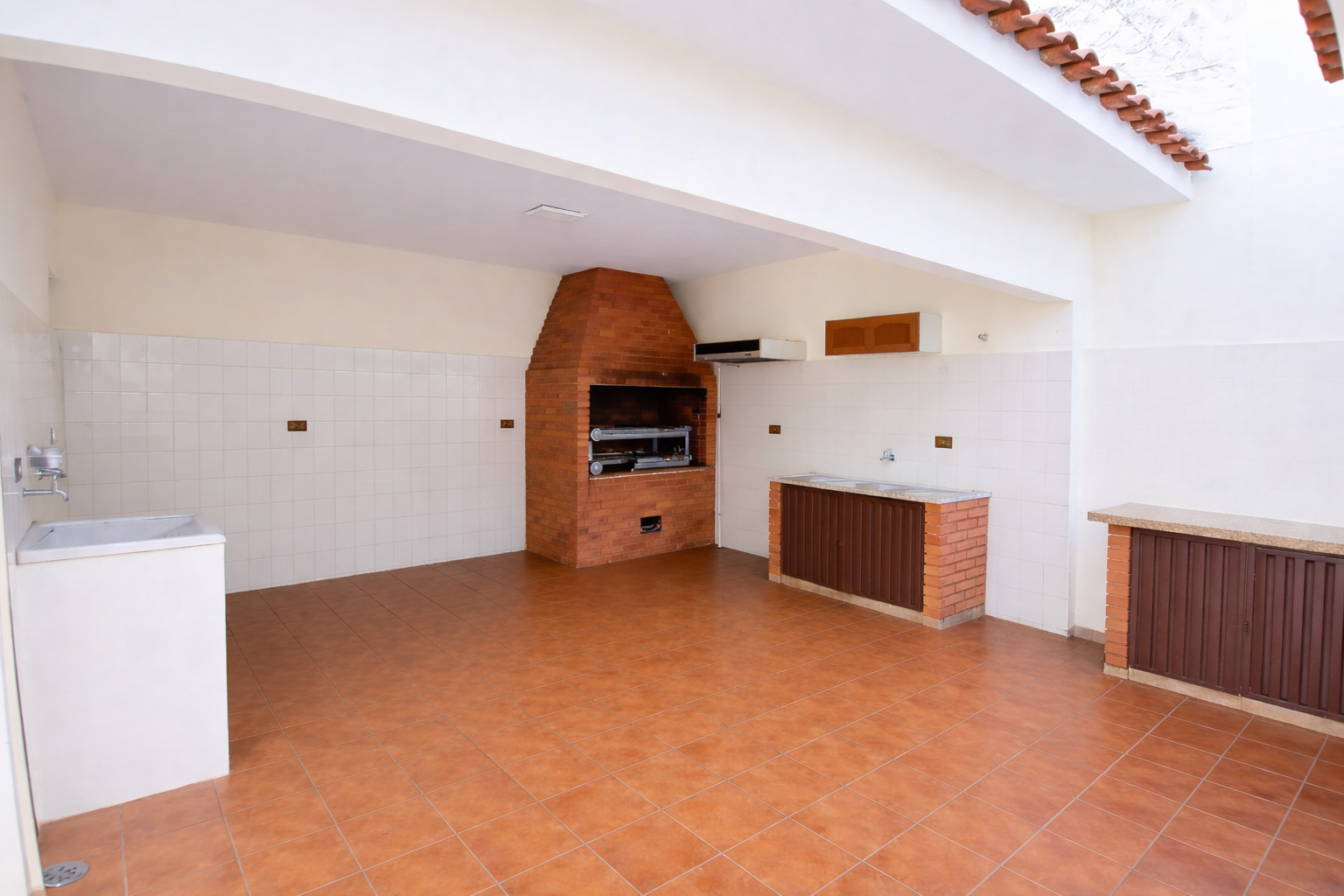 Garagem para 4 vagas (2 cobertas e 2 descobertas), jardim, varanda, sala de estar, sala de jantar, cozinha com armários planejados, sala de TV, lavabo, banheiro social, 2 quartos, 1 suíte com móveis planejados, área gourmet com churrasqueira, lavanderia, quarto e banheiro externo e dois corredores laterais.Características